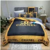 Black Logo Chanel Bedding Set White Background